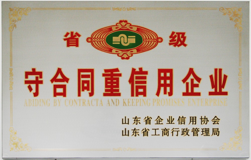★ 2008年獲《山東省守合同重信用企業》榮譽稱號;